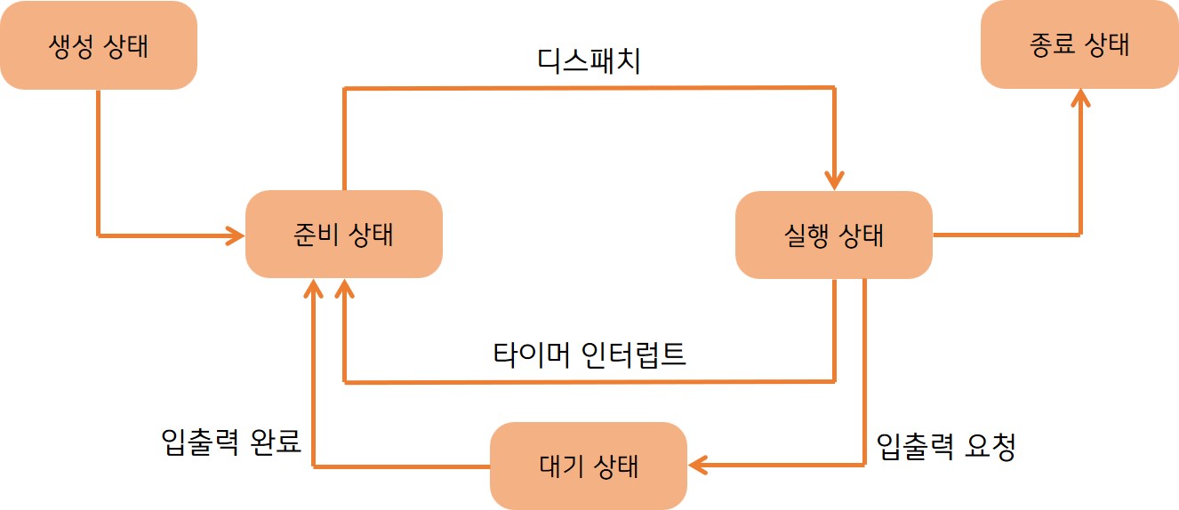 -디스패치(dispatch) : 준비 상태인 프로세스가 실행 상태로 전환되는 것