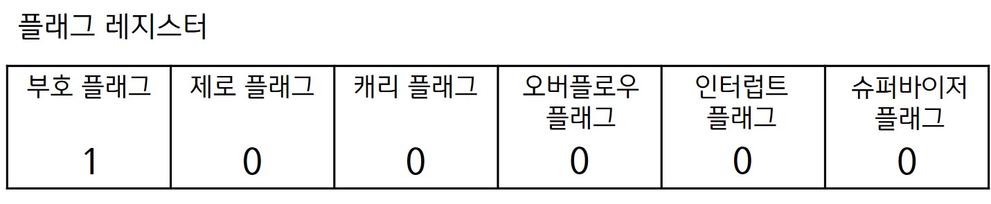 부호 플래그 | 연산한 결과의 부호를 나타낸다. | 1 | 연산 결과가 음수다. |