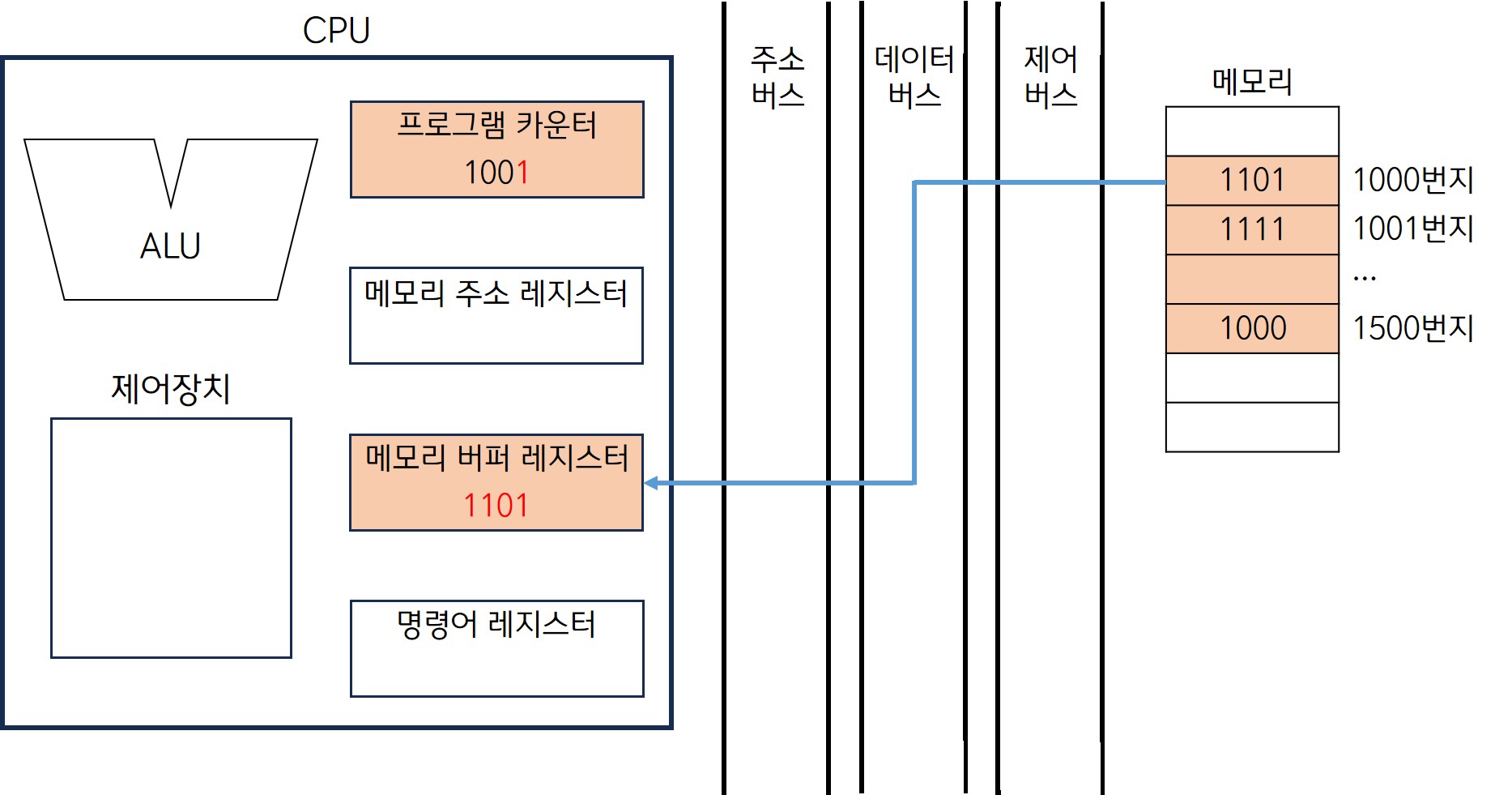 -CPU가 주소 버스로 내보낼 값(읽어 들이고자 하는 주소 값)이 레지스터(메모리 주소 레지스터)를 거친다.